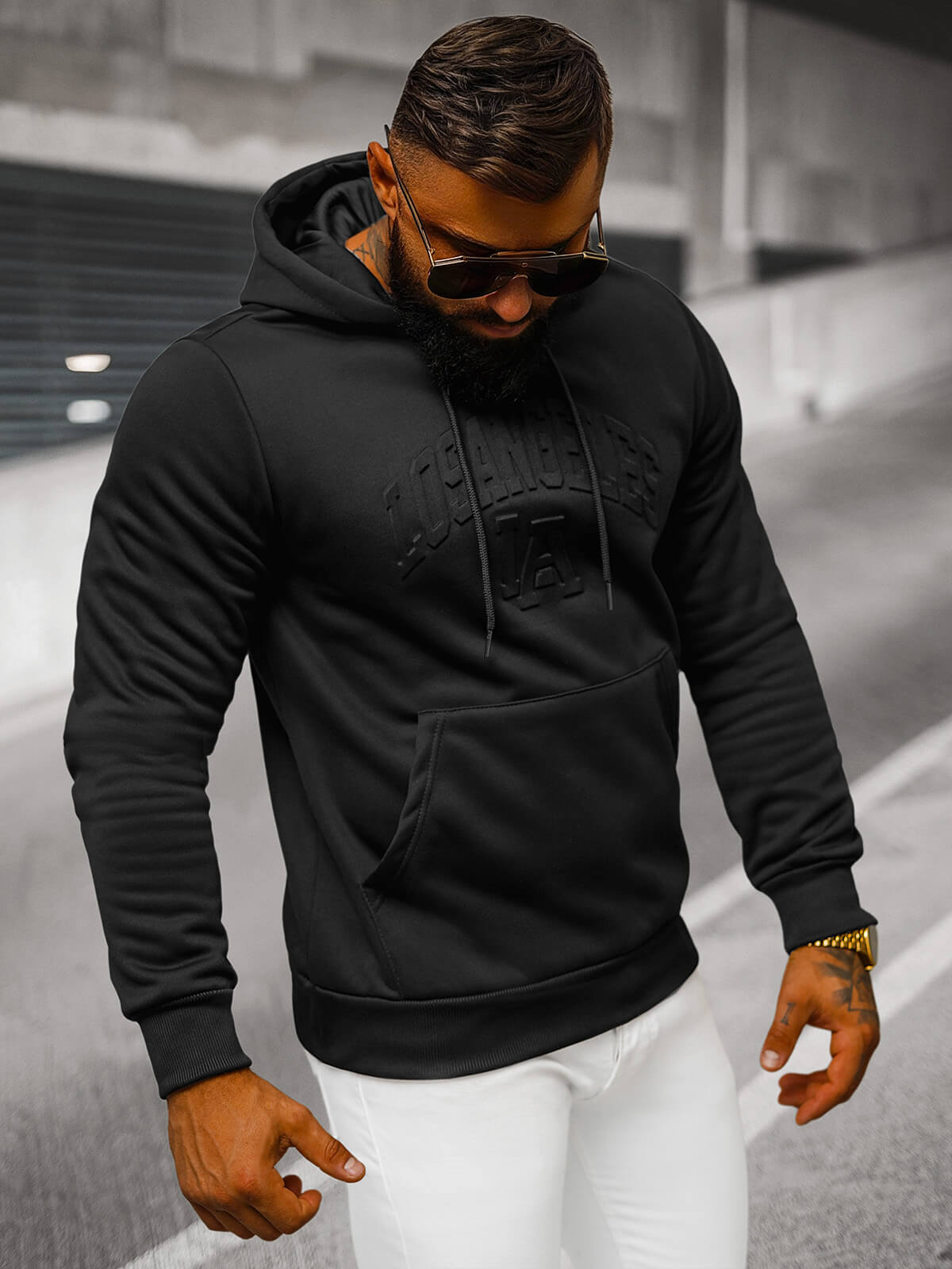 Férfi kapucnis felső fekete OZONEE JS/27B6511/3