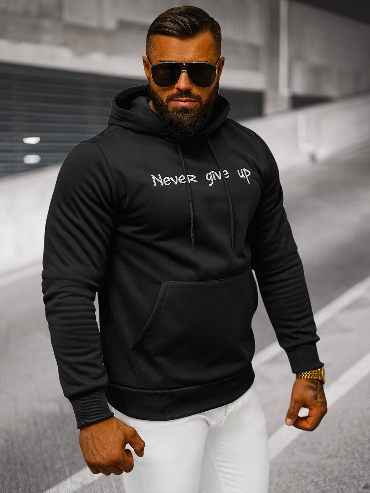 Férfi kapucnis felső fekete OZONEE JS/27B6512/3
