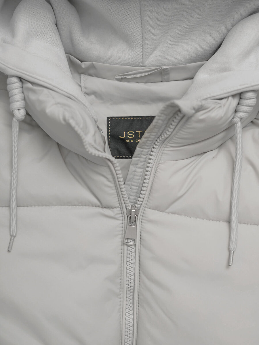 Cipzáras, Levehető kapucnival rendelkezik, amely egy melegítőfelsőt imitál, Divatos steppelés, Oldalsó zsebek, Bordázott mandzsetta