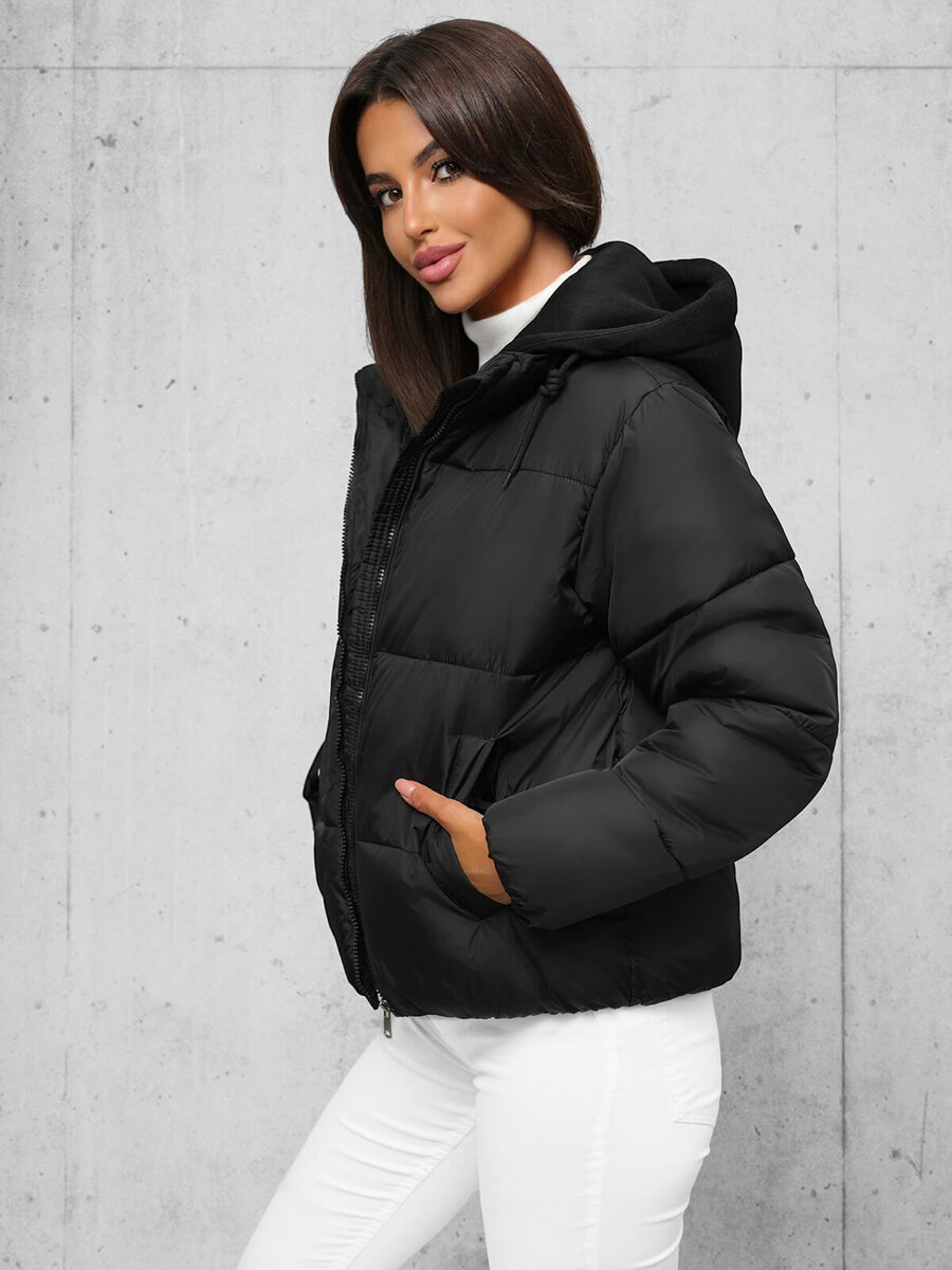 Női steppelt télikabát fekete OZONEE JS/16M9187/392 - megbízható szövetségese a téli napokon