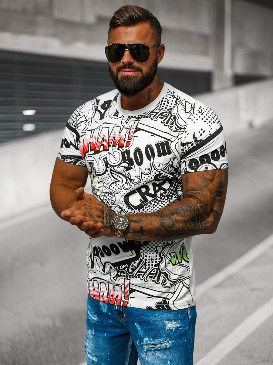 Ha felveszed ezt a képregényes pólót, biztos hogy ki fogsz tűnni a tömegből. A mi pólónk életre kelt minden casual stilizációt. Felveheted találkozókra az ismerősökkel, buliba, vagy koncertre. Ennek a pólónak a segítségével, több tucat divatos outfitet hozhatsz létre. Nagyon jól fog passzolni más férfiruházathoz, amiket a kínálatunkból tudsz megvásárolni. Összeállíthatod például bomber típusú dzsekivel, továbbá joggerekkel.