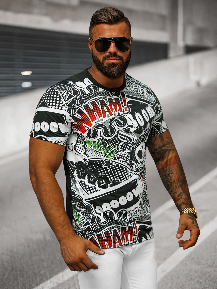 Ha felveszed ezt a képregényes pólót, biztos hogy ki fogsz tűnni a tömegből. A mi pólónk életre kelt minden casual stilizációt. Felveheted találkozókra az ismerősökkel, buliba, vagy koncertre. Ennek a pólónak a segítségével, több tucat divatos outfitet hozhatsz létre. Nagyon jól fog passzolni más férfiruházathoz, amiket a kínálatunkból tudsz megvásárolni. Összeállíthatod például bomber típusú dzsekivel, továbbá joggerekkel.