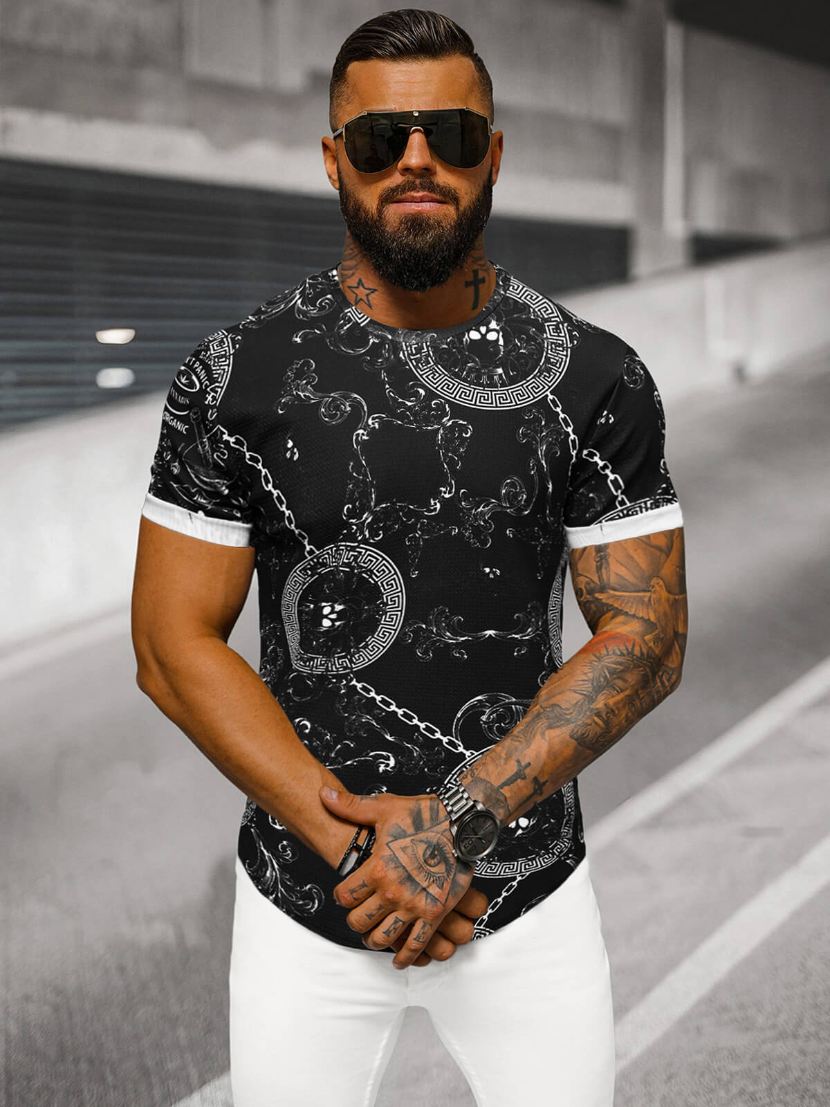 A feliratos póló, egy nagyszerű alternatíva a klasszikus, egyszínű modellekhez képest. Ennek a terméknek a segítségével, sikeresen életre kelthetsz minden, még a legnehezebb stilizációt is. Ez a póló kiváló lesz kimenőre a barátokkal - vagy a bárba, esetleg koncertre, illetve buliba a klubba. Könnyedén hozzá tudod illeszteni más férfi ruházatot, amiket az internetes boltunk kínálatában tudsz megtalálni. Nagyon jól fog mutatni például bomberdzsekivel és joggerekkel.
