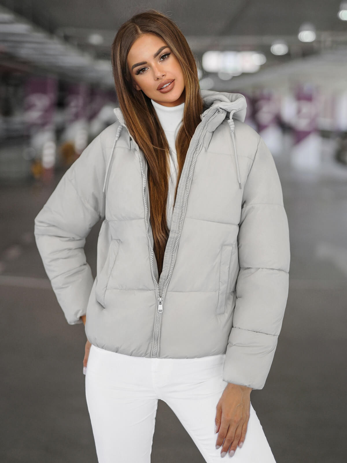OZONEE női steppelt szürke télikabát JS/16M9187/297 - stílusos kiegészítője a téli ruhatárának