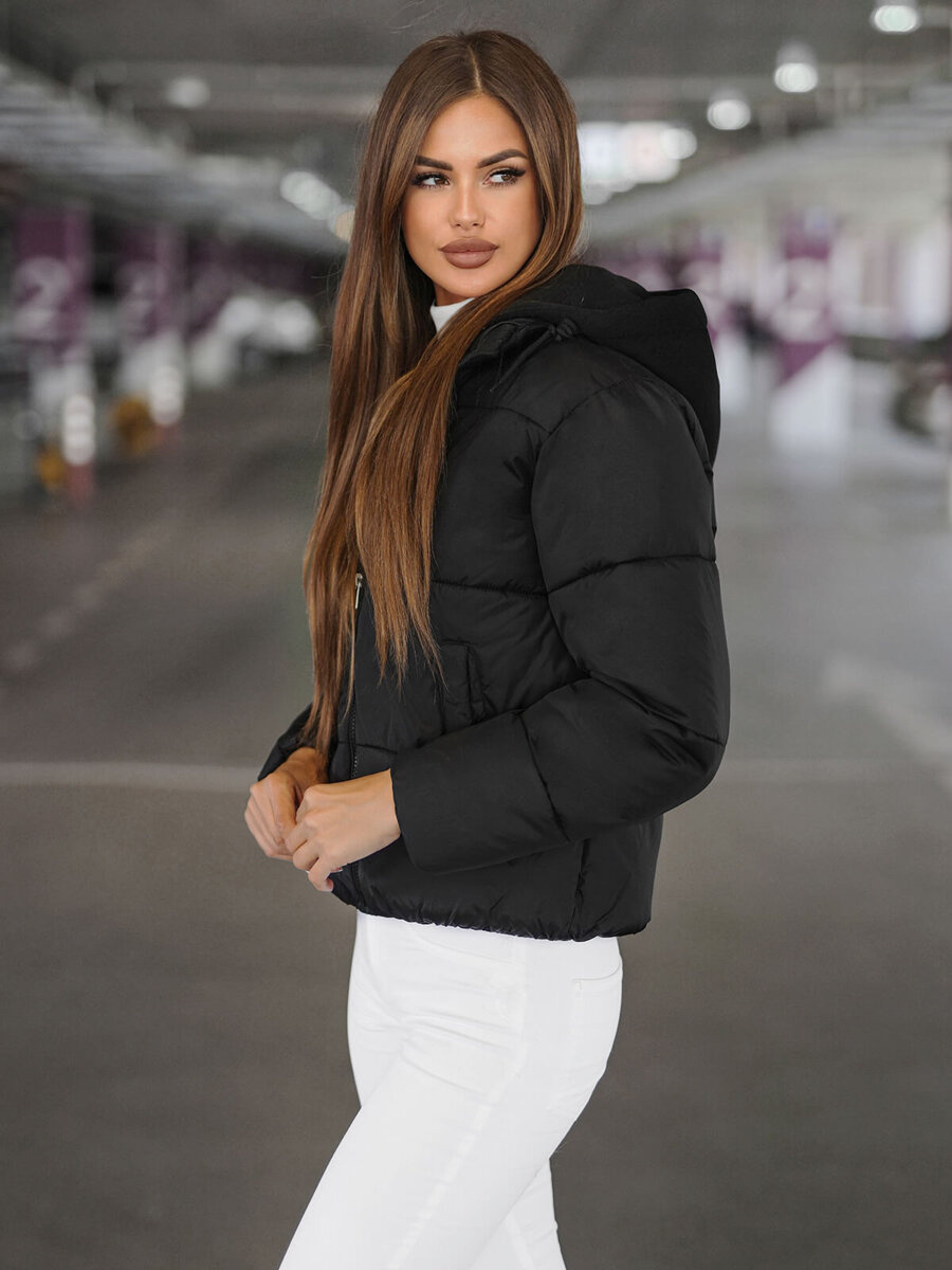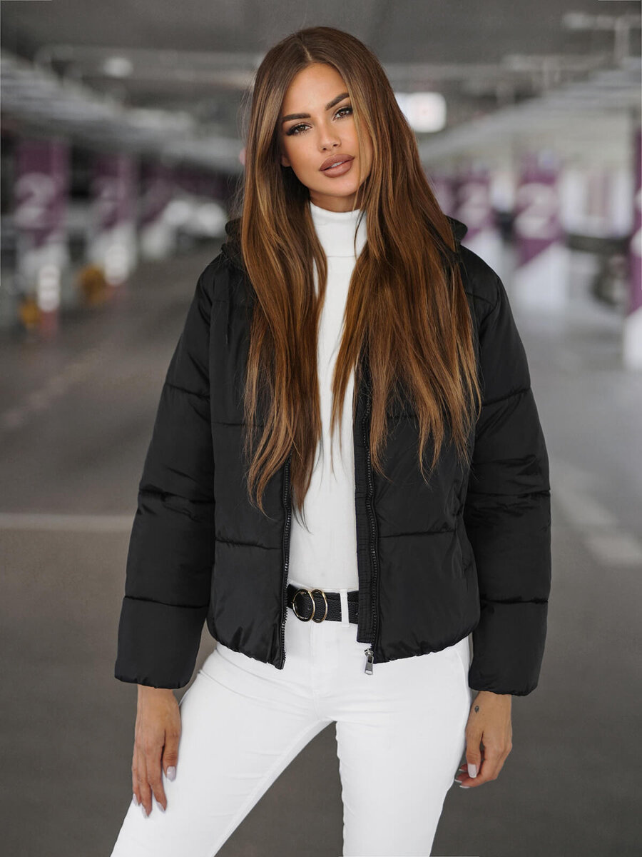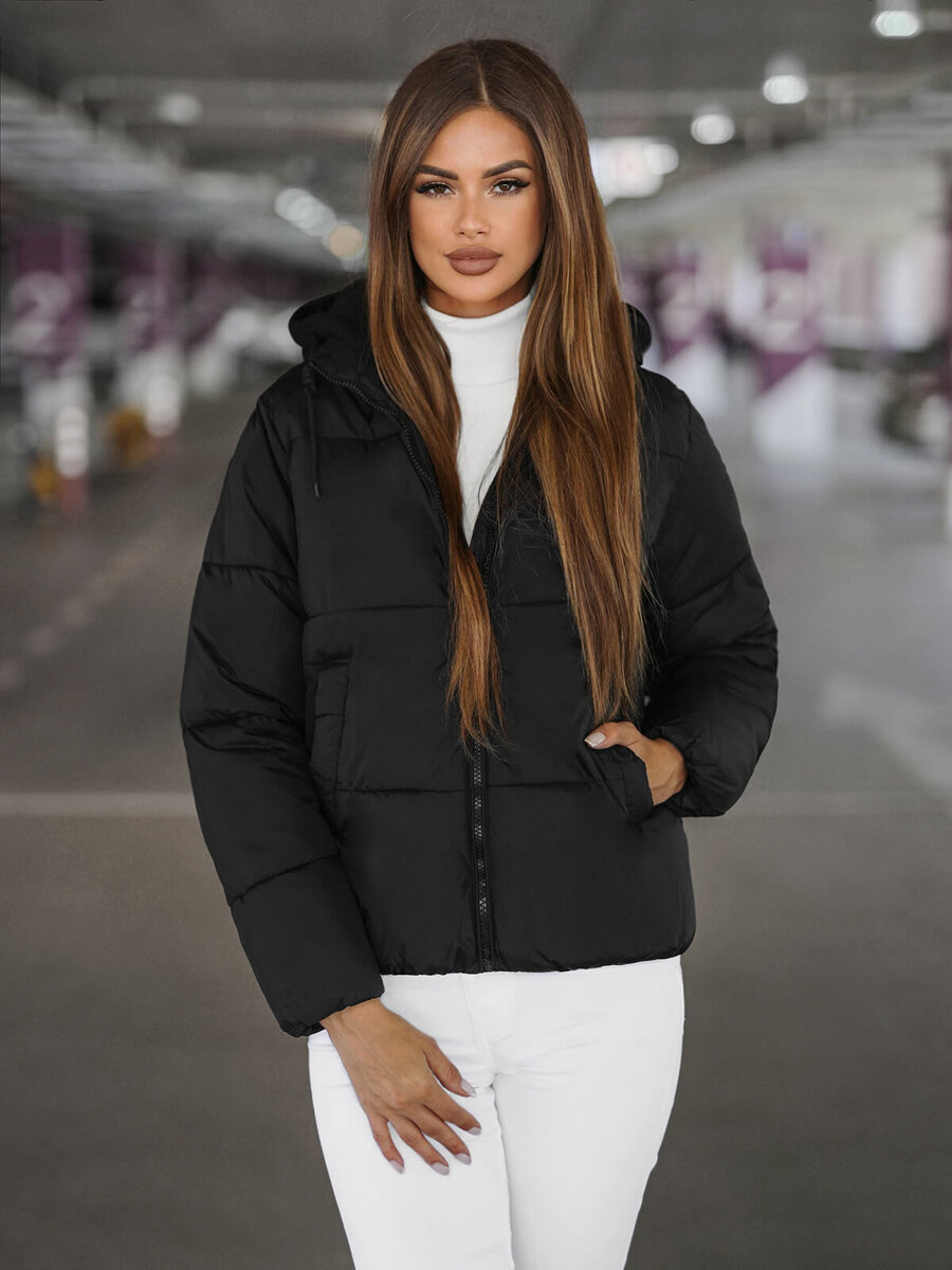 Női steppelt télikabát fekete OZONEE JS/16M9187/392 - megbízható szövetségese a téli napokon