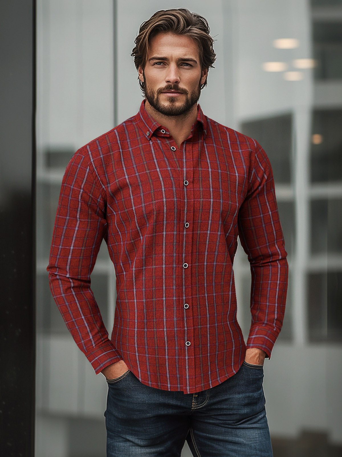 Férfi Ing Piros OZONEE O/V127