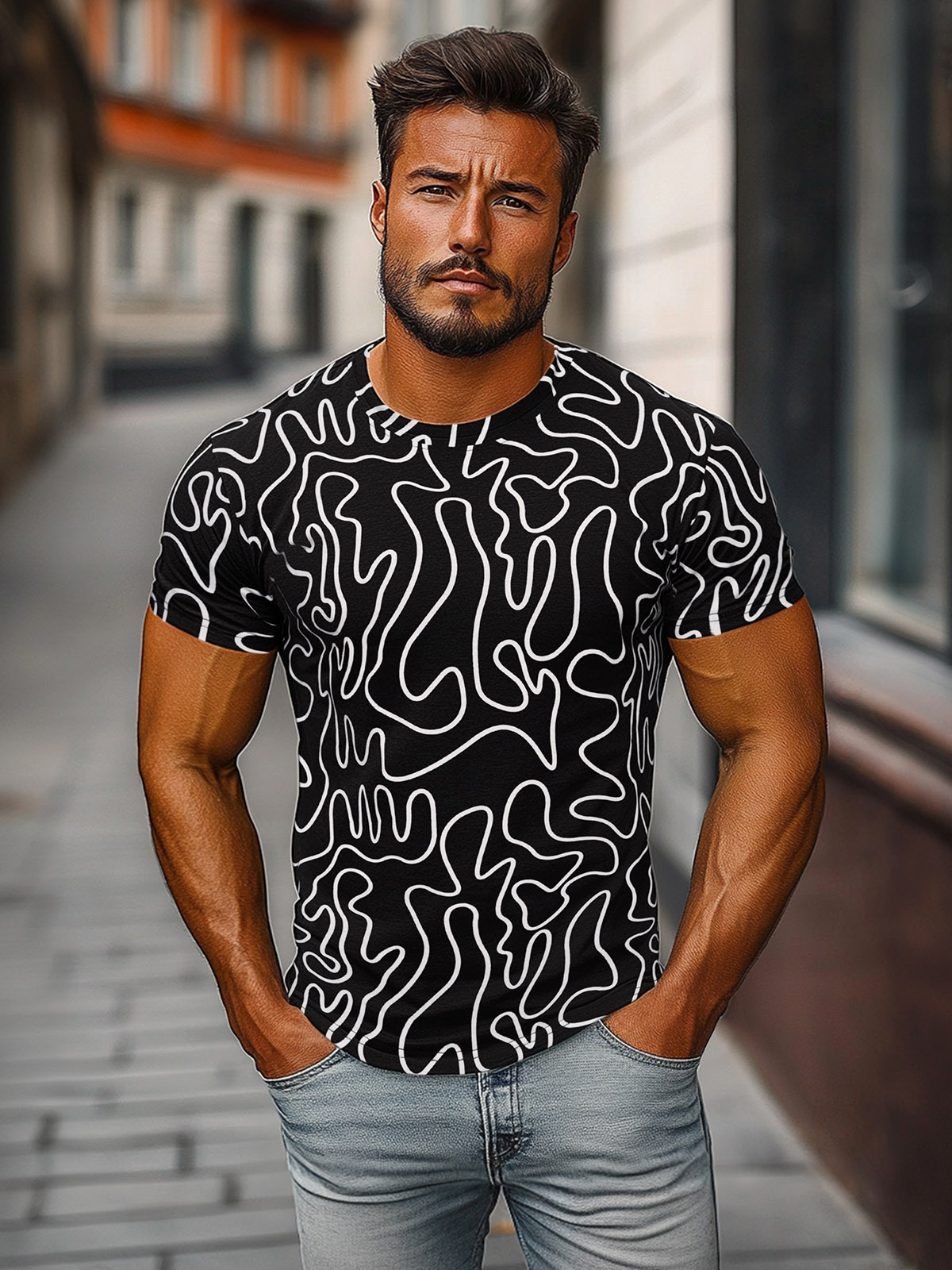 Rendkívül stílusos Fekete férfi póló OZONEE JS/8T1198/3