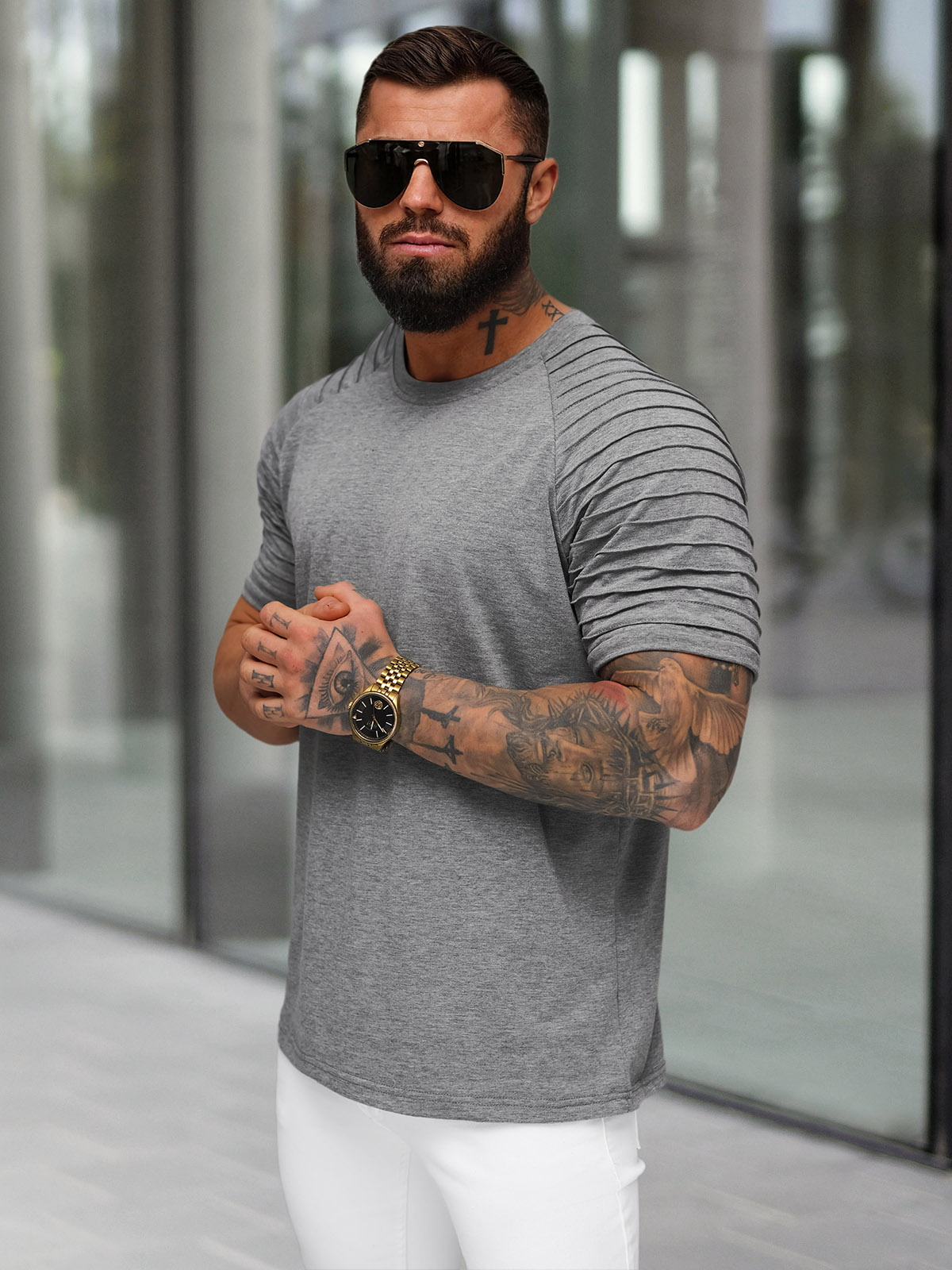 Férfi Póló Grafit OZONEE JS/8T88/5Z