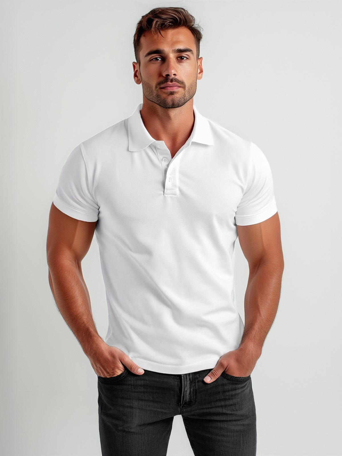 A póló, a legújabb kollekcióból kerül ki. Póló típusú fazonnal rendelkezik, aminek a jellegzetessége a kent típusú gallér, továbbá a három gomb. A póló gyártásához kiváló minőségű pamutot, továbbá elasztánt használtak fel, ennek köszönhetően kényelmes a viselése, kellemes a tapintása, szépen illeszkedik a testalkathoz, nem gyűrődik és tartós a rongálásra, illetve koszolódásra.