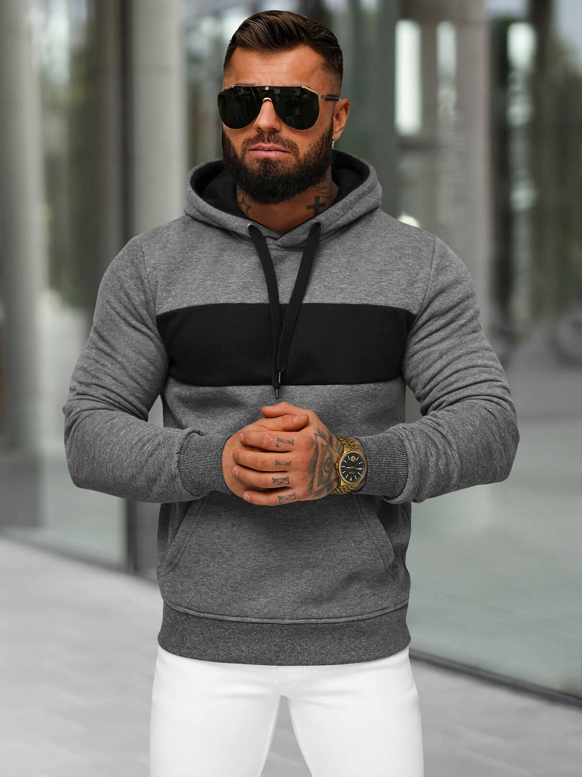 Férfi kapucnis felső grafit OZONEE JS/8B1315/5