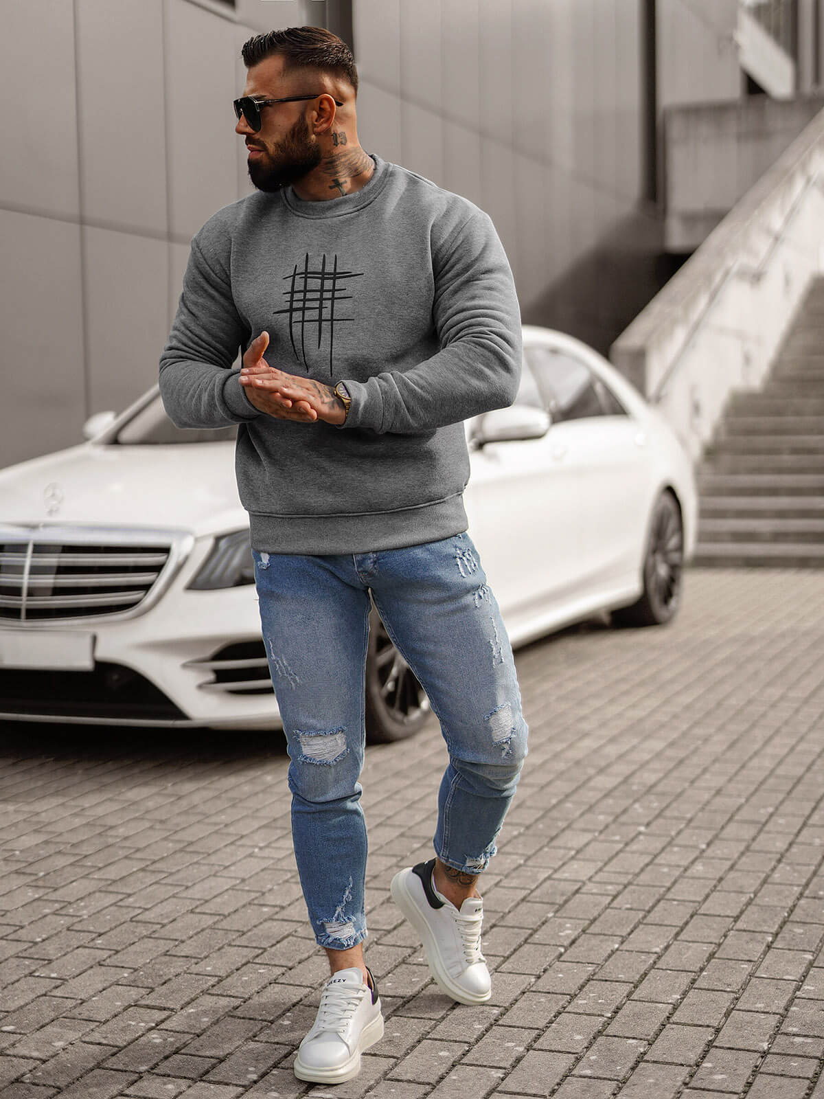 - Modell (182 cm, 87 kg) és L-es méretet hord.