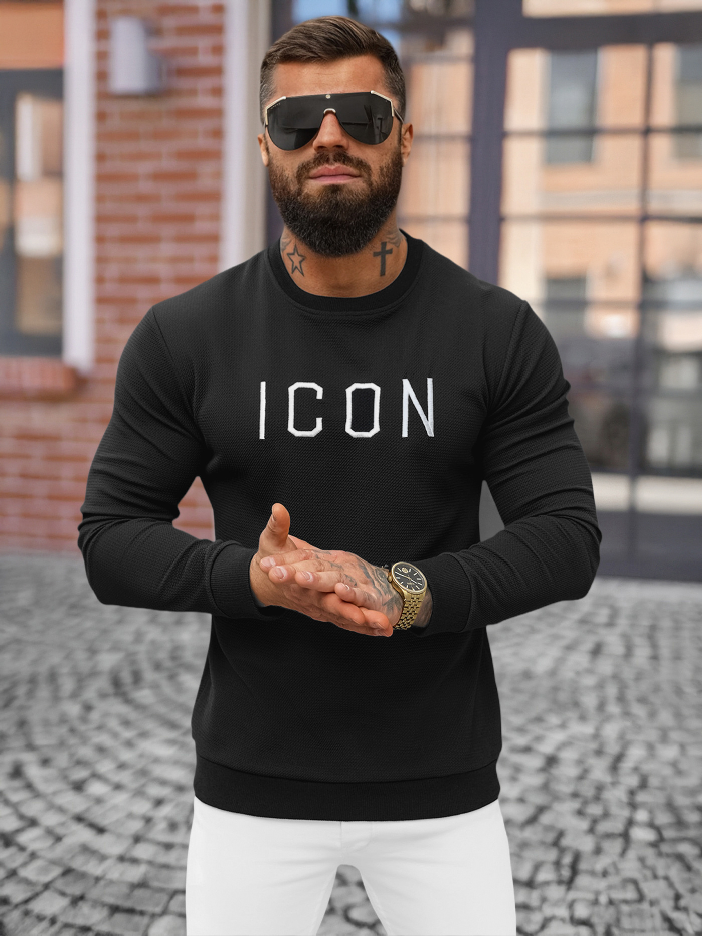 - Modell (182 cm, 87 kg) és XL-es méretet hord.