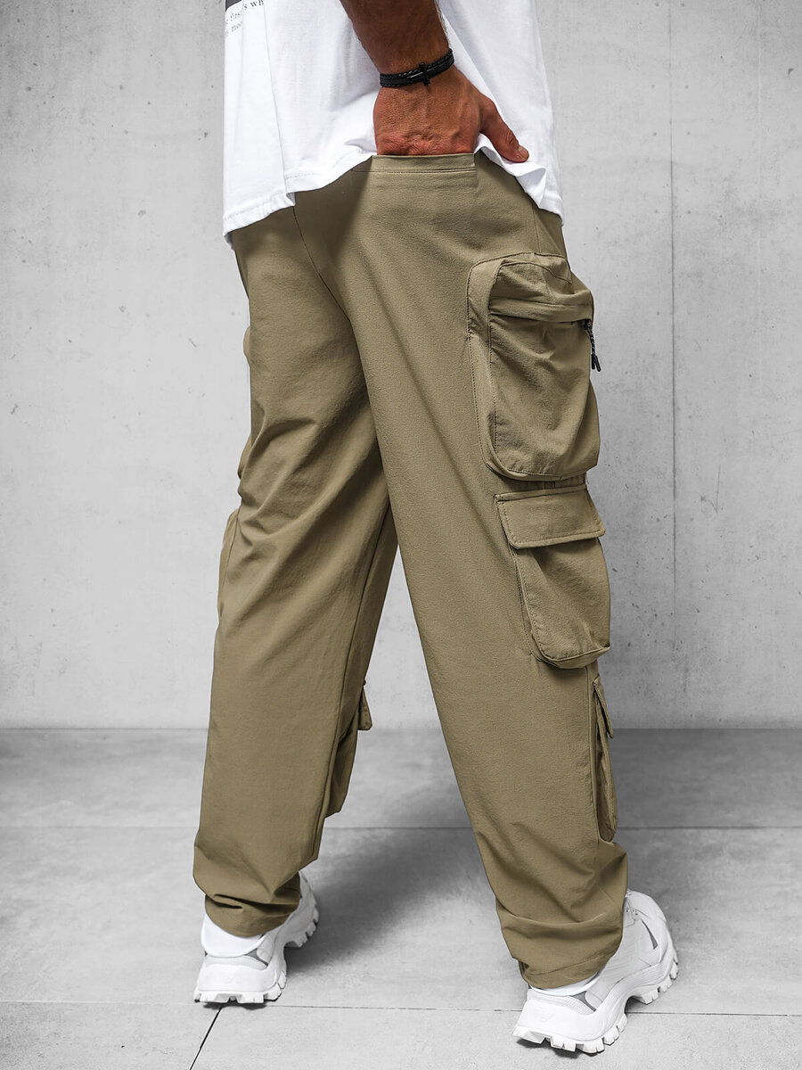 Férfi cargo széles szárú sötétbézs nadrág OZONEE O/PS5528 - Modern találkozik a klasszikussal