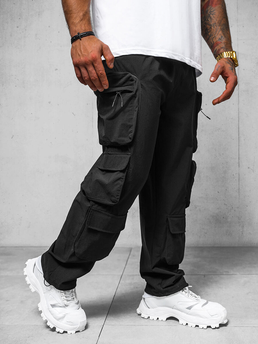 Férfi cargo széles szárú nadrág fekete OZONEE O/PS5528 - Divatos választás a modern férfi számára