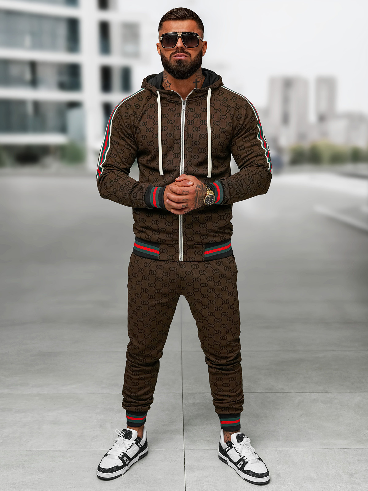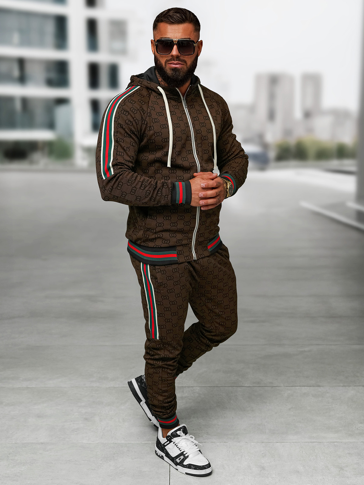 Férfi melegítő együttes sötét-bézs OZONEE O/FF5111AB