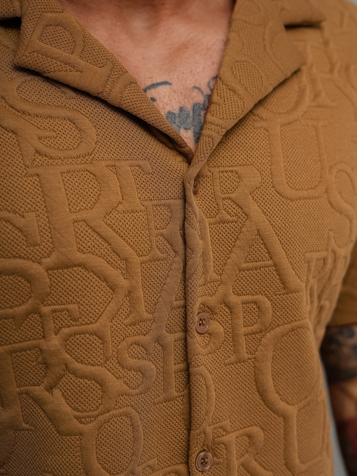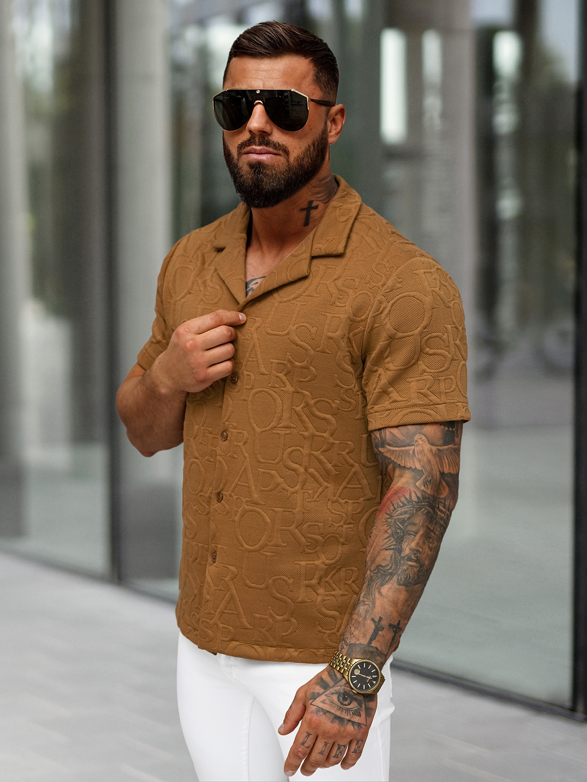 Férfi ing rövid ujjal barna OZONEE O/B2256