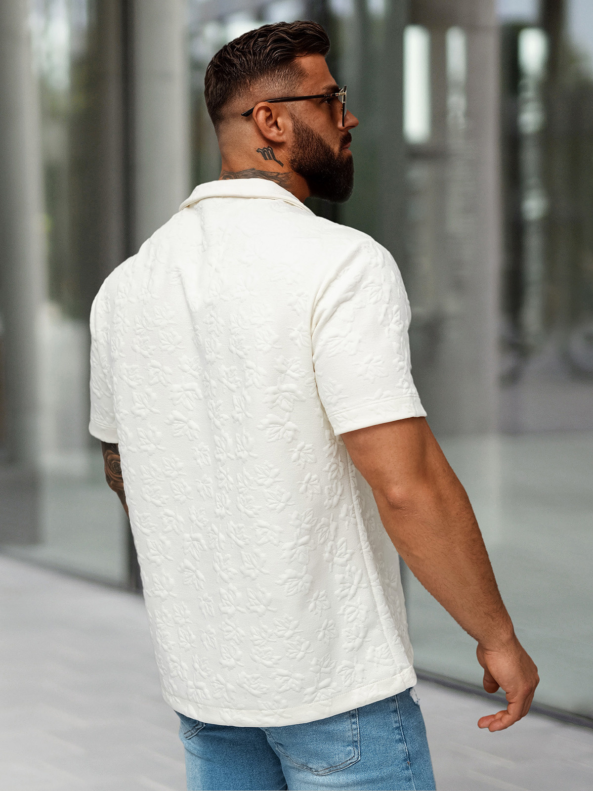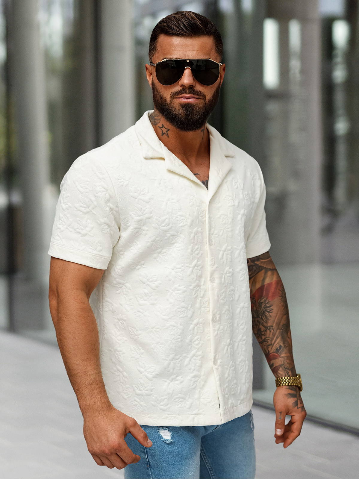 Férfi ing rövid ujjal ecru OZONEE O/B2258