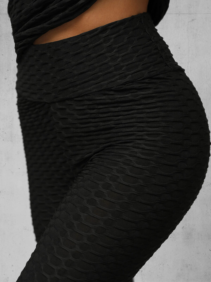 A szett, a legújabb kollekcióból kerül ki, az internetes boltunkból. A szett kettő darab részt tartalmaz. Egyrészt, tartalmazza a pólót vastag pánttal és kerek dekoltázzsal. A szett tartalmazza még a leggingset magasított résszel, amivel elrejtheted a problémás testalkat részeit, ilyen az oldalsó rész, vagy a has. Mind a két rész nyomott grafikával rendelkezik, ami eredeti kinézetet biztosít. A szett gyártásához poliésztert és elasztánt használtak fel. Ennek köszönhetően szépen illeszkedik a testalkathoz, nem gyűrődik és nem akadályoz a mozgásban.