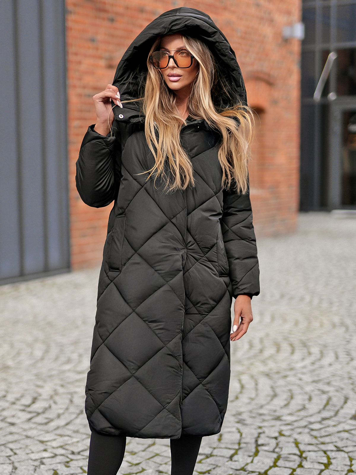 Női téli hosszú steppelt kabát fekete OZONEE JS/5M3173/392