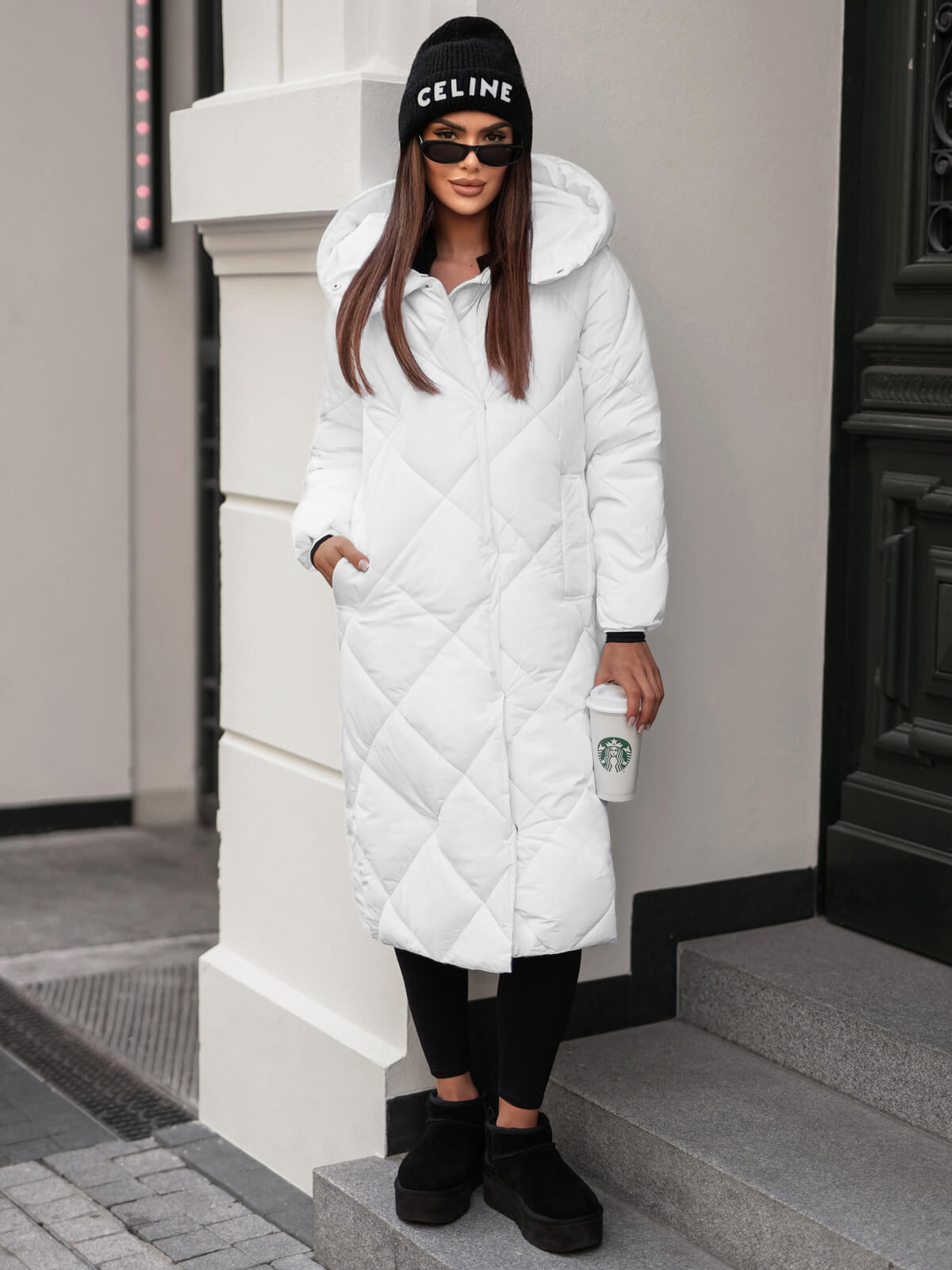 Női téli hosszú steppelt kabát fekete OZONEE JS/5M3173/392