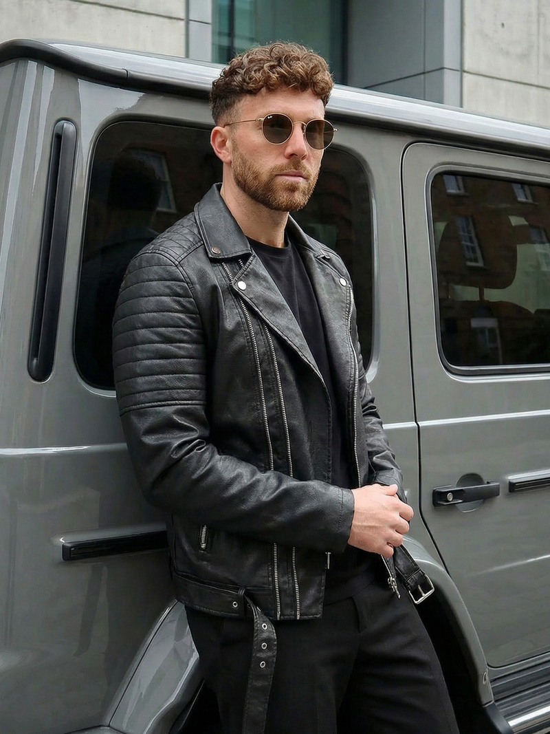 A férfi ramoneska dzseki az OZONEE legújabb kollekciójából tökéletes választás azoknak a férfiaknak, akik értékelik a stílust és a kényelmet. Az ökobőrből készült, cipzárral záródó fekete kabát rendkívül divatos és sokoldalú ruhadarab.