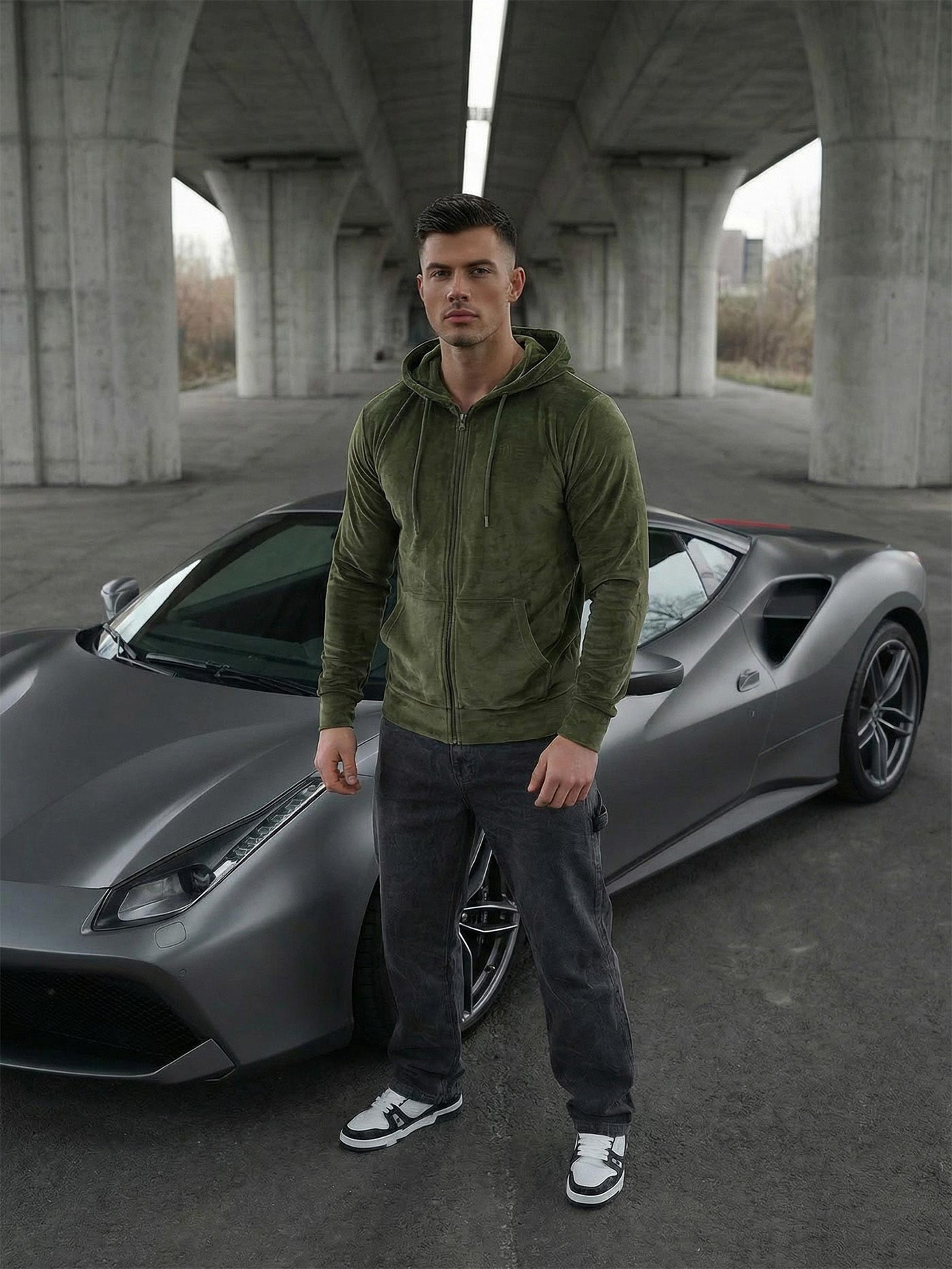 Férfi khaki színű velúr kapucnis pulóver OZONEE JS/8B1168/29Z a kényelem és a modern design kombinációja. A legmagasabb minőségű anyagaów-ból készült, egész napos kényelmet biztosít. Cipzárral záródik, kapucnival rendelkezik, amely egyedi jelleget kölcsönöz. Az alja és a szegéllyel befejezett ujjak hangsúlyozzák a sportos stílust.