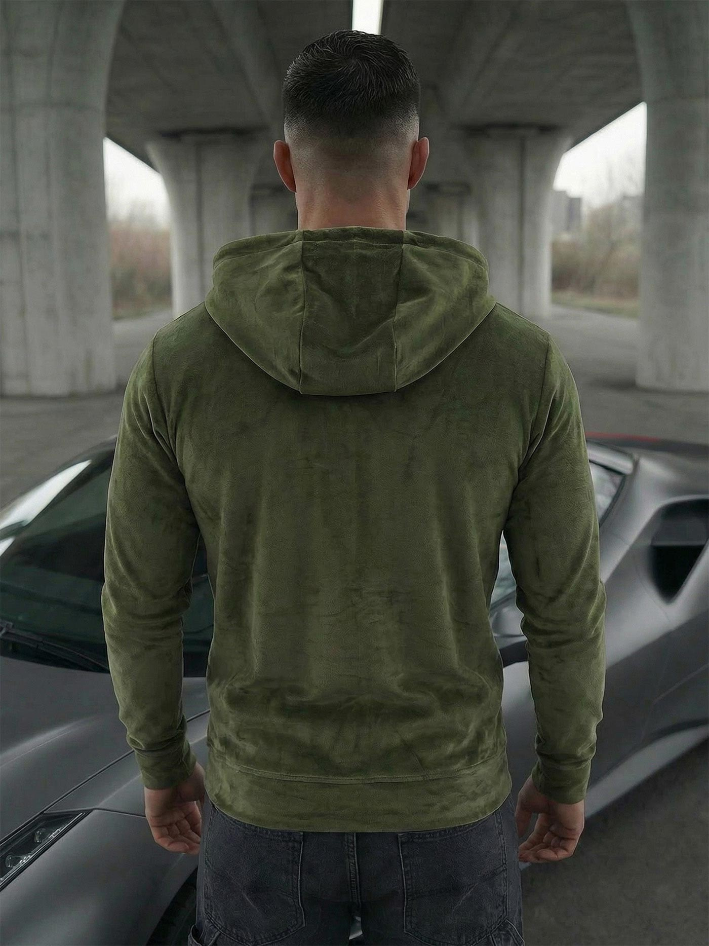 Férfi khaki színű velúr kapucnis pulóver OZONEE JS/8B1168/29Z - stílus és kényelem egyben